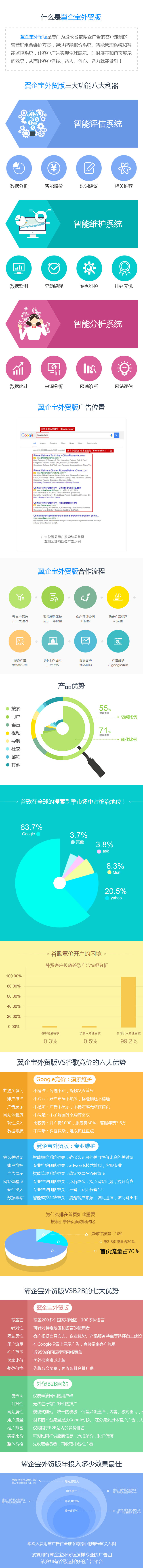 翼企宝外贸版帮助外贸客户投入GOOGLE广告,全年保证首页展示效果!足不出户,营销全球