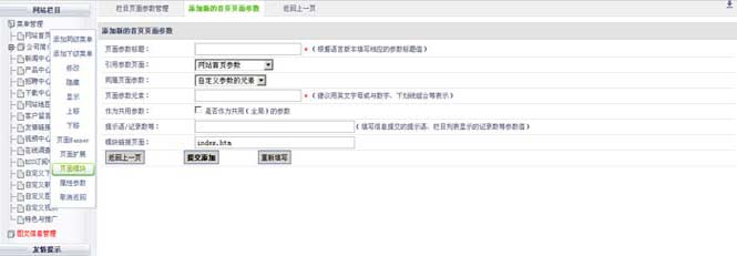 2.栏目页面参数中选择“页面参数标题名称” →打开“修改此页面参数” 在打开的管理页面可以对“页面参数信息”功能进行修改。
