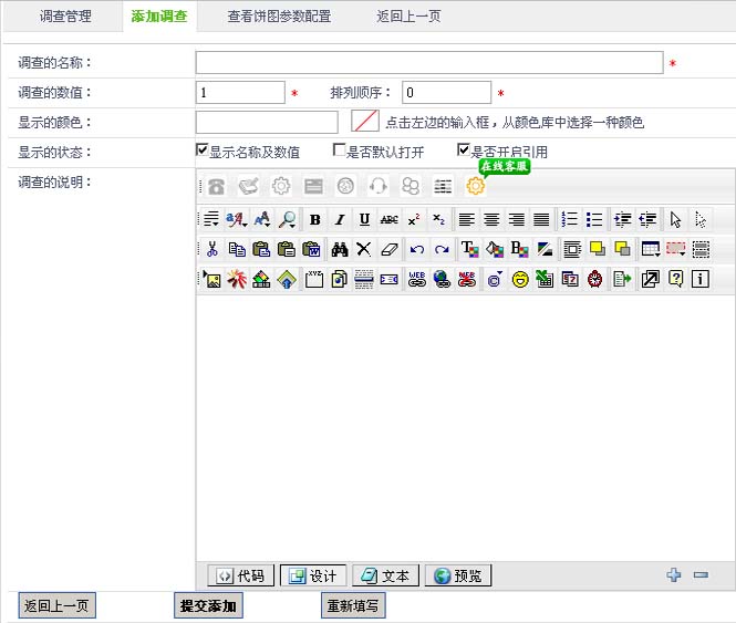 3.在“显示的颜色”字段,填写显示调查的颜色值。